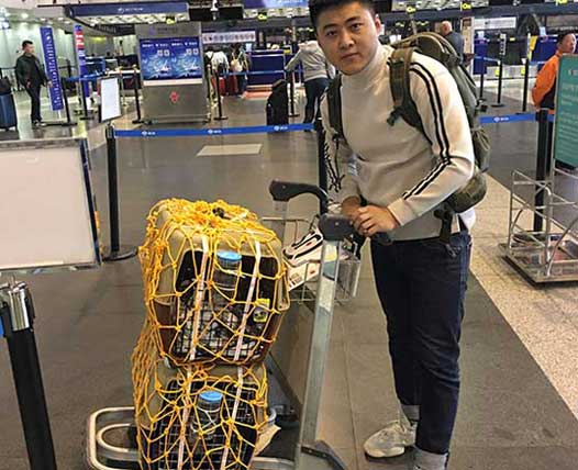 英國斗牛犬(美國——中國)因為成年英牛夏天***怕中暑,專業的寵物保姆給寶寶航空箱放了冷凍礦泉水瓶來給它降溫。即使長途運輸,寶寶狀態非常好,在辦公室等待主人接他回家,主人非常滿意,感恩